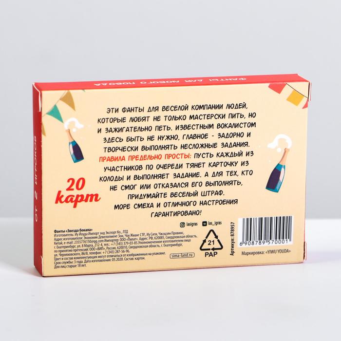 Купить игра для компании "фанты звезда бокала" 20 карт от 120 руб. с доставкой до пункта выдачи в Санкт-Петербурге. Интернет магазин ДекаМаркет. Оплата при получении.